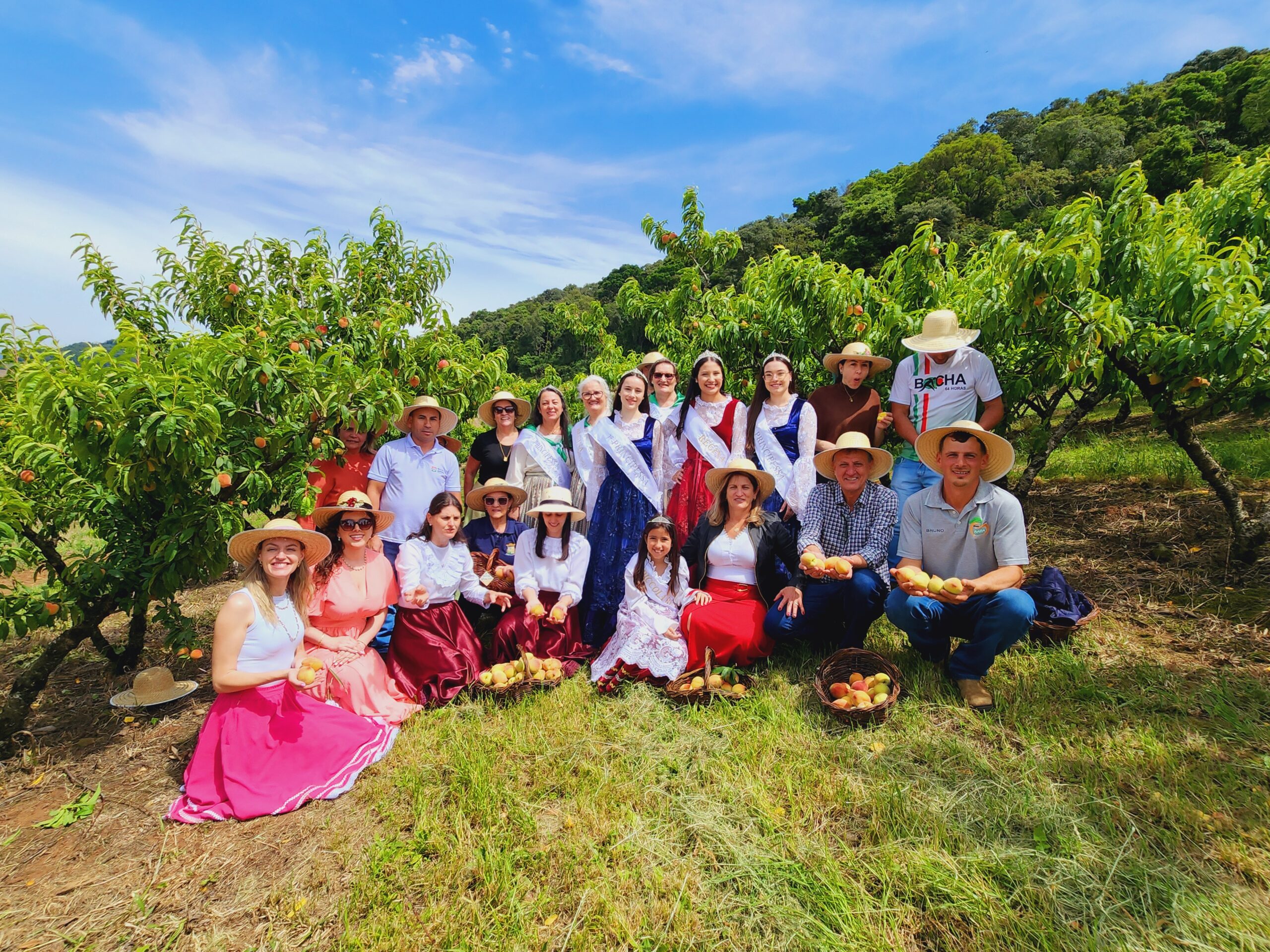 ✓ 14h00 – Saída para o sítio de colheita do pêssego Kit colheita incluso (cesta, chapéu e faca) 2 kg de pêssegos inclusos